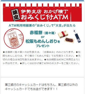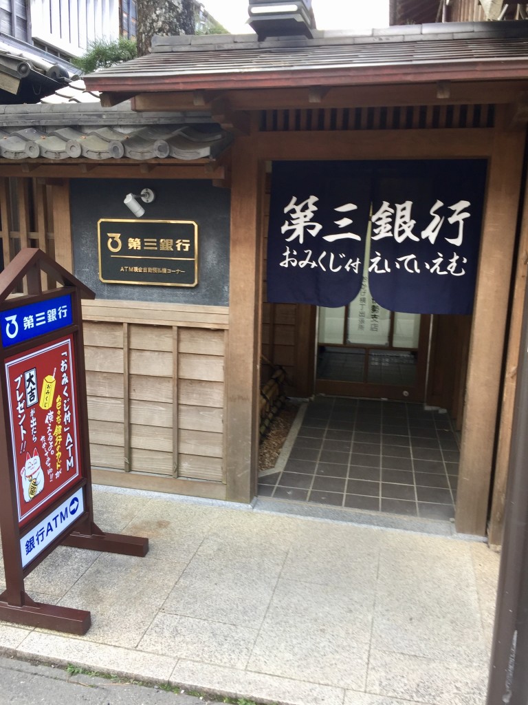 おかげ横丁を歩いていたら偶然第三銀行伊勢支店のATMに遭遇しました。