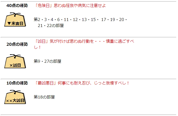 運勢の良い日は特に問題はないのですが、運勢の悪い日にとんでもないことが起こりやすいものです。