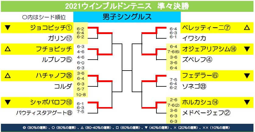 本日男子準々決勝の運勢は下記の通りです。