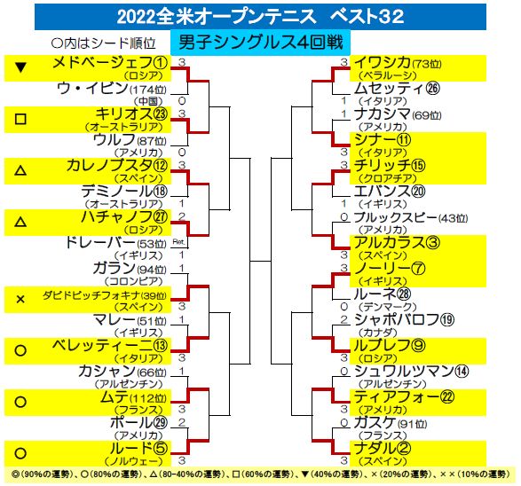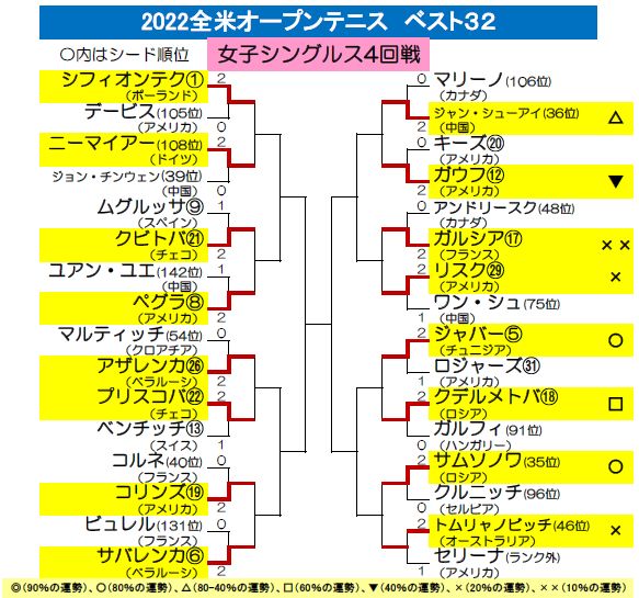 【USオープンテニス4回戦の運勢】