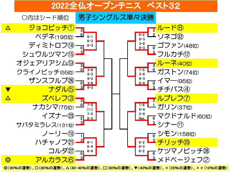 運勢はジョコビッチに軍配ですが、楽しみな一戦です。
