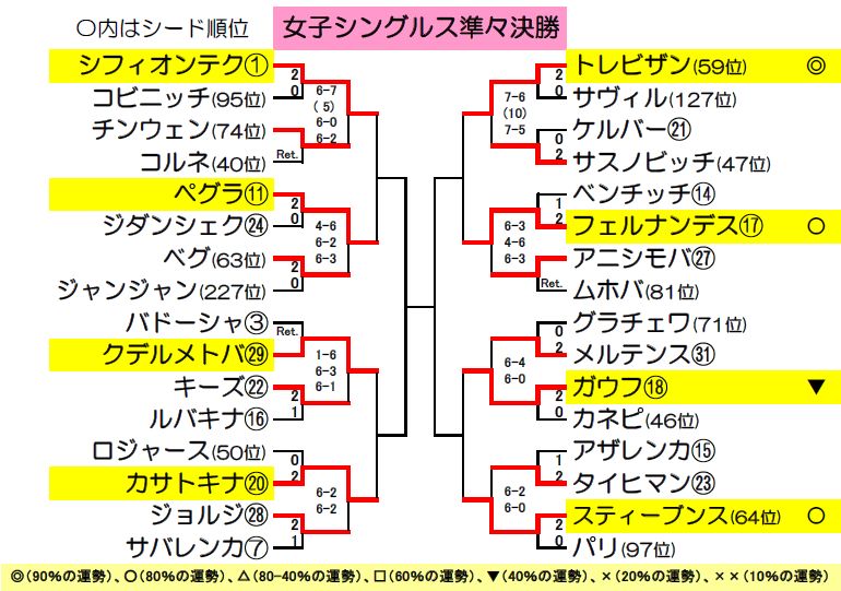 【全仏オープンテニス準々決勝の運勢】