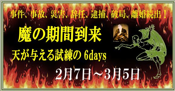 「天が与える試練の6days」として恐れられている魔の期間に入りました。2月7日(火)~3月5日(日)