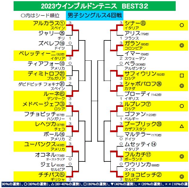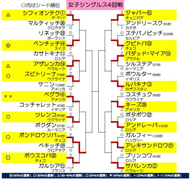 全32シード選手+日本人選手の運勢をランキング形式で紹介。