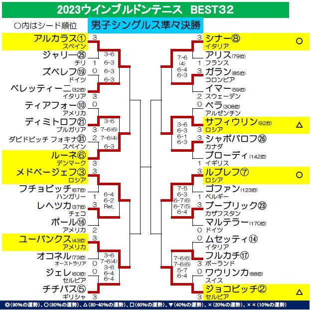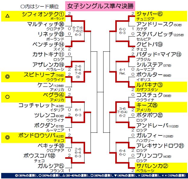 全32シード選手+日本人選手の運勢をランキング形式で紹介。