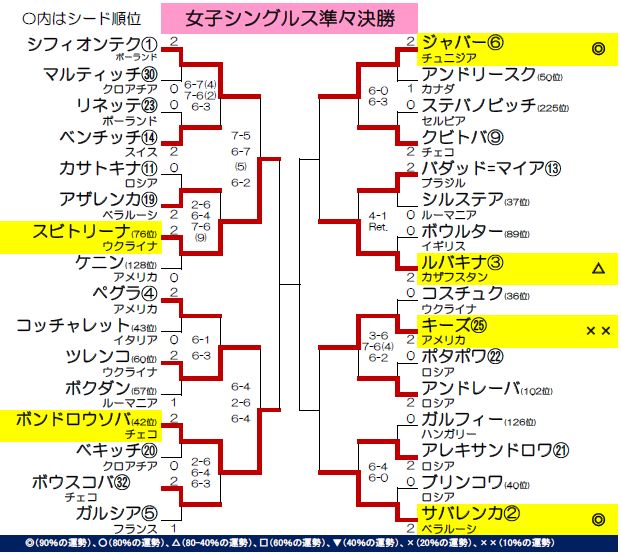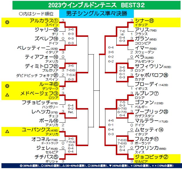 全32シード選手+日本人選手の運勢をランキング形式で紹介。