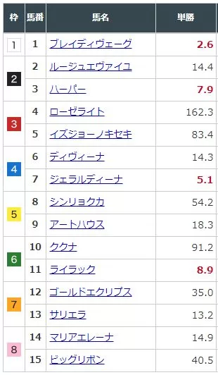 もうひとつ参考までに…、1番人気①ブレイディヴェーグ2.6倍の運勢は凶日です。
