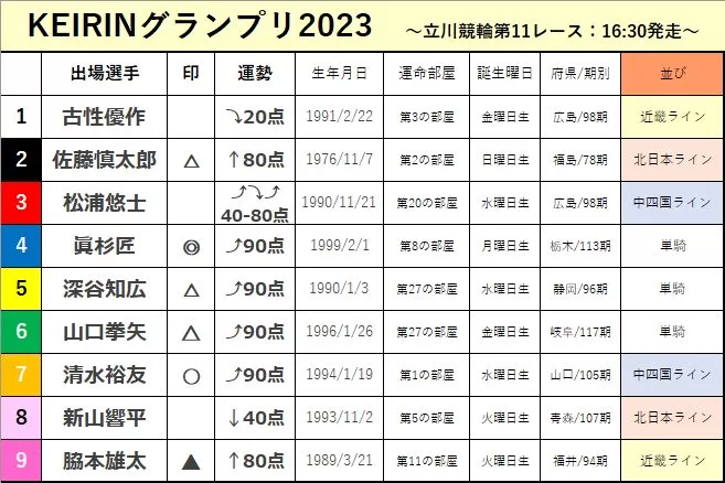 今年最後の運命予想は、毎年恒例の「競輪グランプリ」です。