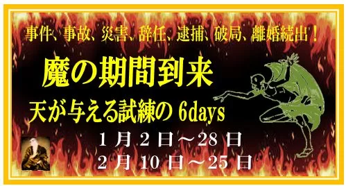 期間中の✖✖(最凶悪)日は、通常の✖✖日とは違い、様々な試練が神様より与えられるのです。