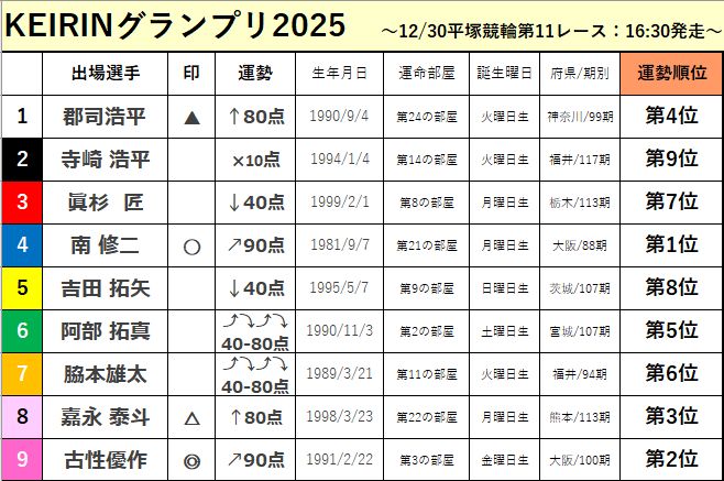 競輪には地域性などいろんな要素があるので、選手の運勢通りの結果になるかどうかはなかなか難しそうですが、今年も私なりに加味して予想の印をつけてみました。