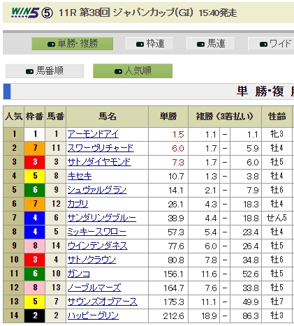明日はジャパンカップです。