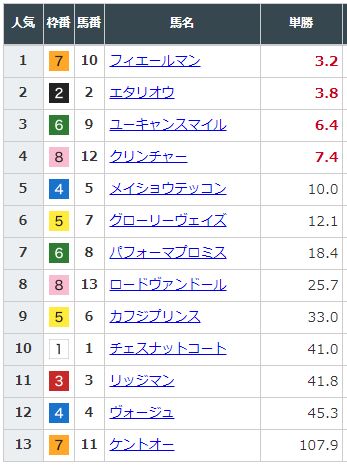 人気も1番人気⑩フィエールマン、2番人気②エタリオウ、3番人気⑨ユーキャンスマイルが4歳馬です。