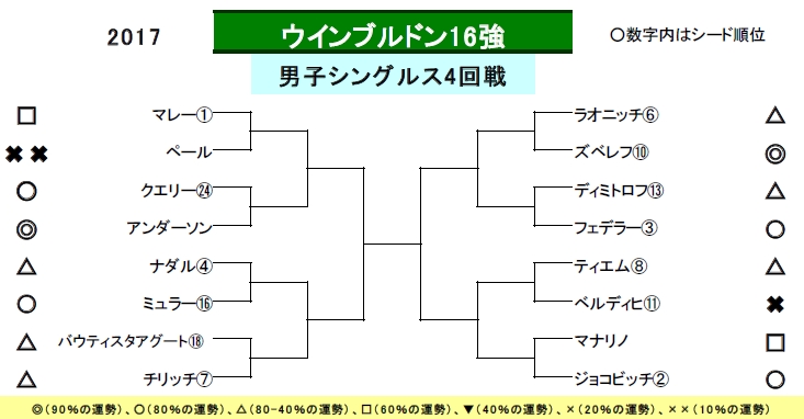 ウインブルドンテニスは男女ベスト16が出揃いました。