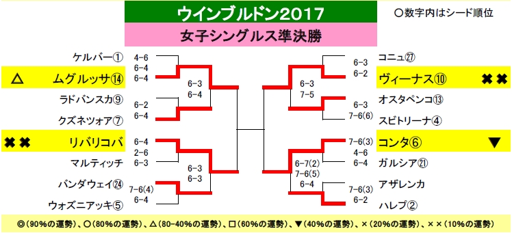 我慢のテニスと無理をしないテニスをしないと厳しい戦いとなりました。ムグルッサ △(80-40%の運勢)