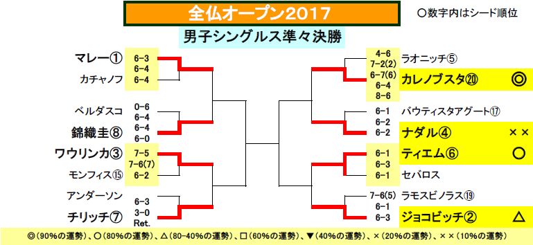 ナダル(第4シード)××(10%の運勢)