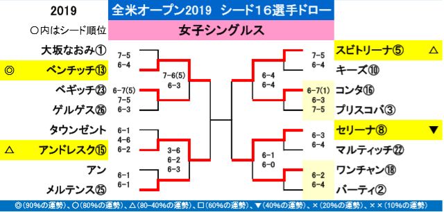 今大会初のピックアップになりました。 錦織圭、大坂なおみ、西岡良仁、土居美咲の日本人4選手はすでに敗退となりました。 本日はこれから女子シングルス準決勝がおこなわれ、各選手の運勢は下記の通りです。 >>各選手の運勢はこちらから<<上位シード選手と日本人選手男女各20名をピックアップし、運勢ランキングベスト20を公開しています。全米オープンテニス2019特設ページ公開中です! 星月夜景 2019年9月6日(金)の凶日部屋 前の記事 全米オープンテニス2019男子準決勝の運勢 次の記事
