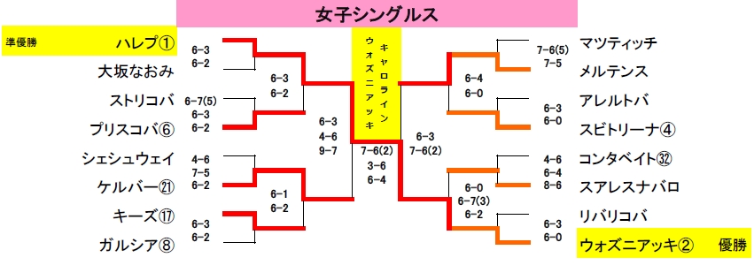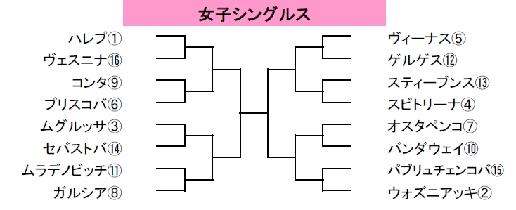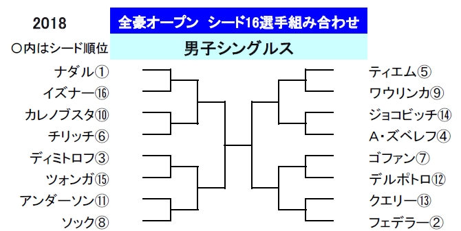 上位16シード選手が順当に勝ち上がった場合の対戦表は下記の通りでした。
