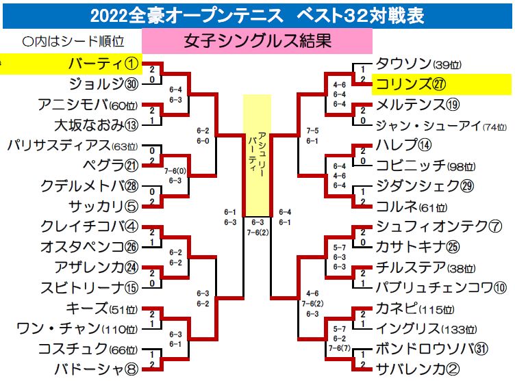 2022年グランドスラムのスタートは女子が地元で第1シードのアシュリー・バーティが優勝。