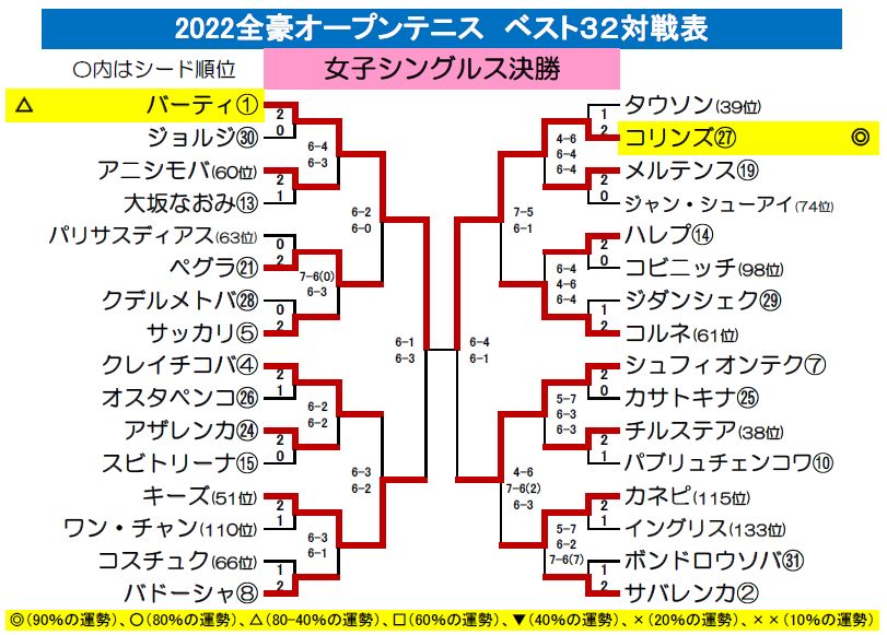 日本人選手と豪州の選手の場合は、時差2時間なのですが、ヨーロッパ、アメリカの日付は1日前になっている場合があるため、前日の運勢となるので注意が必要です。