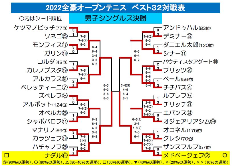 男子決勝30日は、第2シードのメドベージェフ対第6シードのナダルの対戦となりました。