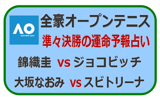 テニスグランドスラム大会『全豪オープンテニス』4回戦を大接戦の末勝利した錦織圭は天敵第1シードのジョコビッチ(セルビア)、同じく逆転で勝利した大坂なおみは第6シードのスビトリーナ(ウクライナ)とそれぞれ準々決勝で戦います。