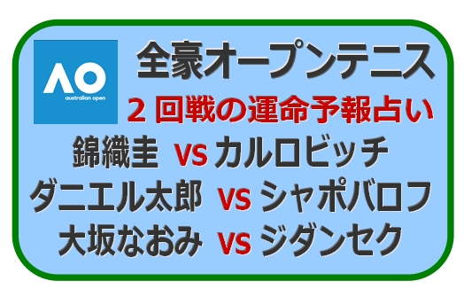 >>各選手の運勢はこちらから<<上位シード選手と日本人選手男女各20名をピックアップし、運勢ランキングベスト20を公開しています。全豪オープンテニス2019特設ページ公開中です!