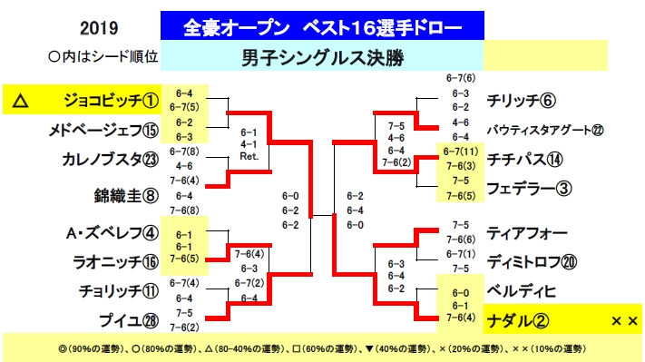 ジョコビッチ△(80‐40%の運勢)vsナダル××(10%の運勢)