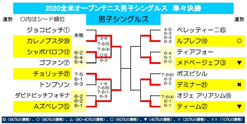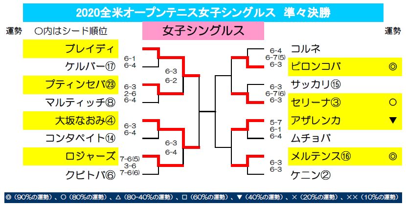 大坂なおみ快勝でしたね! 本日は男女シングルス準々決勝残り各2試合となります。 各選手の運勢は上記の表の通りです。 >>各選手の運勢はこちらから<< 上位シード選手と日本人選手男女各20名をピックアップし、運勢ランキングベスト20を公開しています。全米オープンテニス2020特設ページ公開中です! 星月夜景 月の周期と生年月日を掛け合わせた独自占術「運命予報」により、日々変化する運気の流れを読み解く占い師。これまでに4万人以上を鑑定。 Facebook YouTube 2020年9月10日(木)の運命予報&サウナ占い 前の記事 2020年9月11日(金)の運命予報&サウナ占い 次の記事