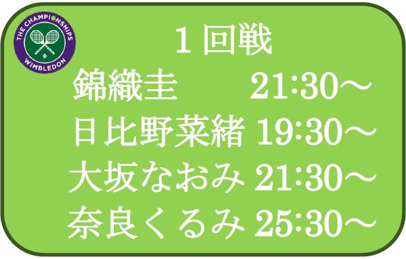 初日1回戦に日本から錦織圭・大坂なおみ・奈良くるみ・日比野菜緒の4選手が登場します。