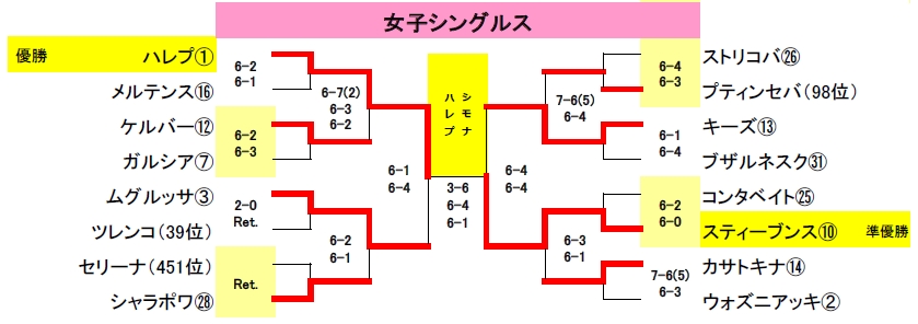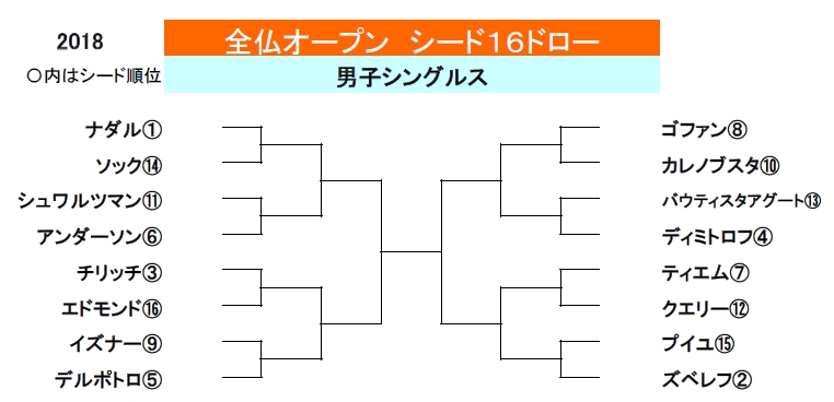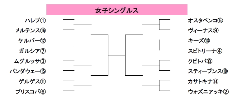 上位16シード選手が順当に勝ち上がった場合の対戦表は下記の通りでした。