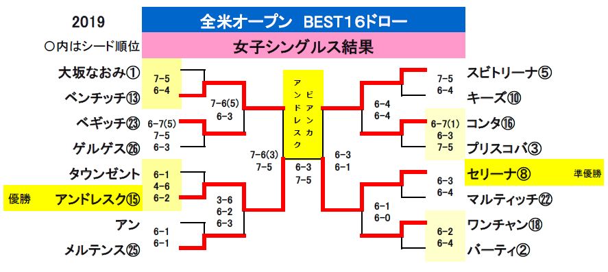 2019全米オープンテニスは8月26日-9月8日の期間開催されました。
