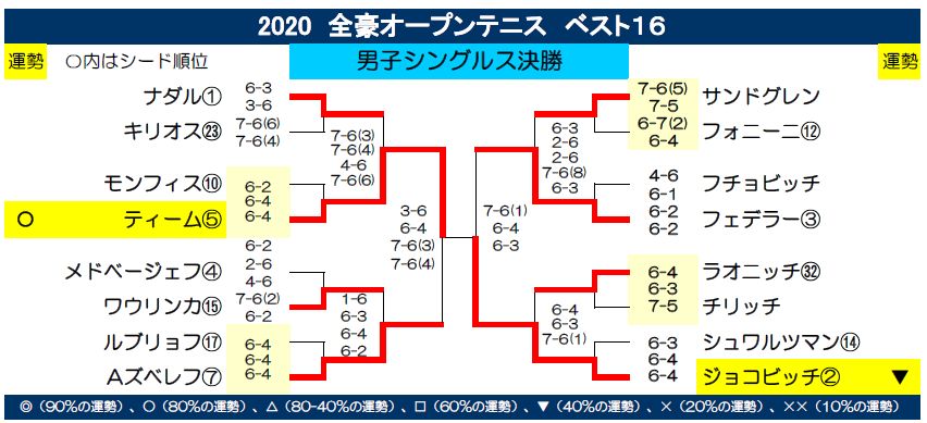 第2シードのジョコビッチ対第5シードのティームの対戦となりました。