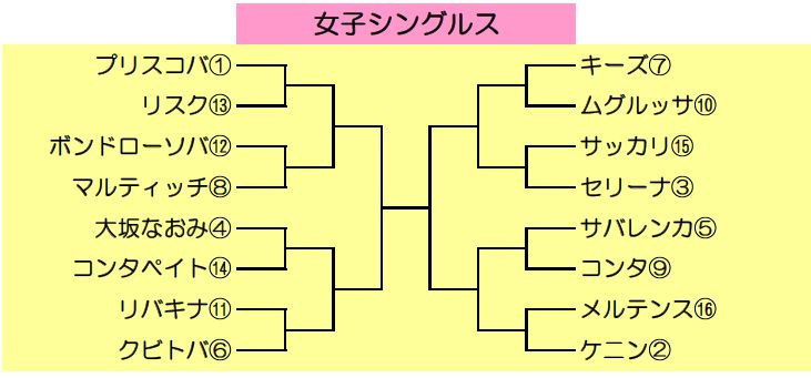 発表されたドロー上位16シード選手の組み合わせは以下の通りでした。