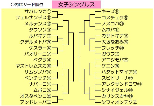 ドローが発表されシード32選手が順当に勝ち上がった場合の対戦は以下の通りです。